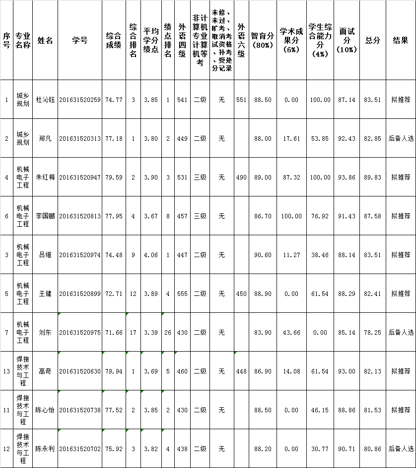 根據《工程學院關于在2020屆本科畢業生中推薦免試研究生的實施辦法及細則》,經2020屆各專業本科畢業生自主申請,學院資格審查、專家小組學術審核、面試與成績綜合評定,按照總成績由高到低的原則,確定了各專業擬推薦人員名單和后備人員名單,現予以公示。