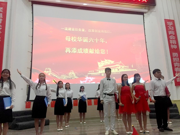工程學院工程造價2017級同學帶來了“奮斗的青春最美麗”主題展示。充滿趣味的導入視頻瞬間吸引了觀眾的眼球,情景劇《大學人的一天》,通過對比兩位石大學生不同的生活狀態,鼓勵同學們選取積極向上的學習生活,貼近大學生活的情景劇表演引發了現場一陣陣笑聲和掌聲。接下來主持人邀請同學寫下自己的心愿,貼在心愿墻上,并邀請部分同學進行分享,更讓人贊不絕口的是大家用“心愿”拼出了一個“石大60”的圖案,主持人說道:在即將迎來學校60周年校慶之即,我們要用實際行動為學校獻上優異成績,這才是大家的共同心愿!最后,全場同學一起朗誦了詩歌《青春中國》,現場氣氛十分熱烈。