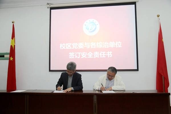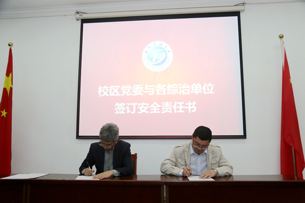 趙剛分別與校區各教學單位、教務部、總務部、后勤服務公司和校區離退休工作處等單位簽訂了《綜治、安全、消防工作責任書》。