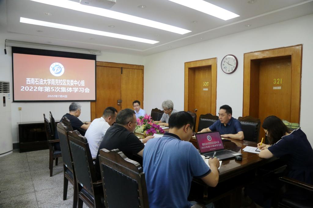 7月4日,南充校區黨委中心組舉行2022年第5次專題學習會,集體學習習近平總書記在四川考察時的重要指示精神。校長助理、南充校區黨委常務副書記張光君主持學習,校長助理、南充校區常務副校長趙剛,南充校區黨委副書記、紀委書記覃鴻飛,南充校區副校長王勝軍、諶海云,校區黨政辦公室、黨群工作部(工會)有關同志參加學習。