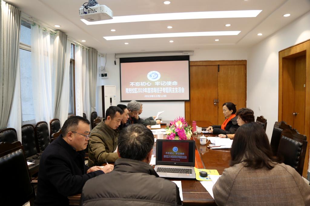 12月12日,南充校區召開領導班子“不忘初心、牢記使命”主題教育專題民主生活會。學校黨委常委、副校長兼南充校區校長劉向君,黨委教師工作部(人才工作辦公室)副部長、人事處副處長何琰到會指導。校長助理、南充校區黨委常務副書記張光君主持會議。