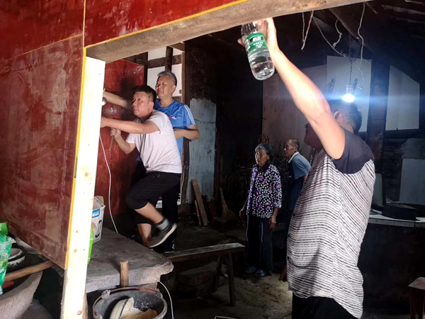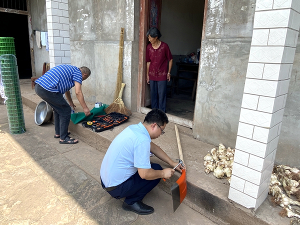 黨員同志幫助脫貧戶安裝防蚊紗窗