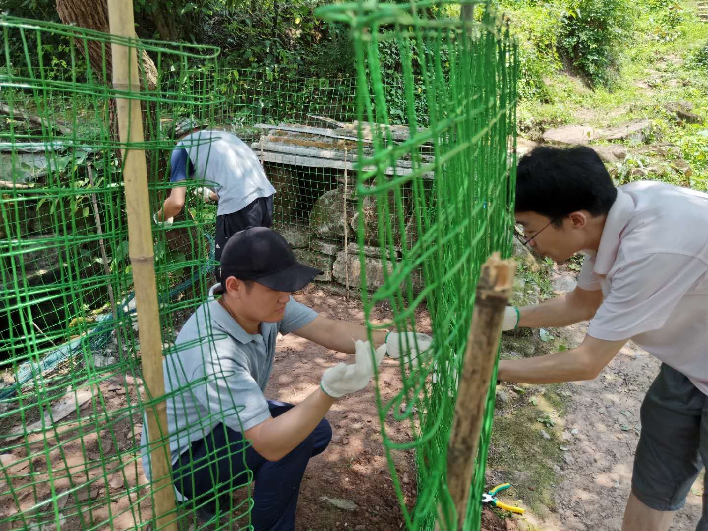 黨員同志幫助脫貧戶安裝家禽飼養圍網