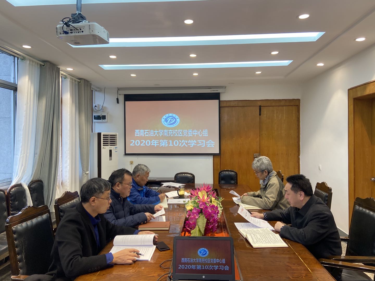 11月25日,南充校區(qū)黨委中心組召開2020年第10次專題學(xué)習(xí)會,學(xué)習(xí)黨的十九屆五中全會精神。校區(qū)領(lǐng)導(dǎo)張光君、趙剛、王勝軍、諶海云,黨群工作部(工會)有關(guān)同志參加會議。會議由校長助理、南充校區(qū)黨委常務(wù)副書記張光君主持。