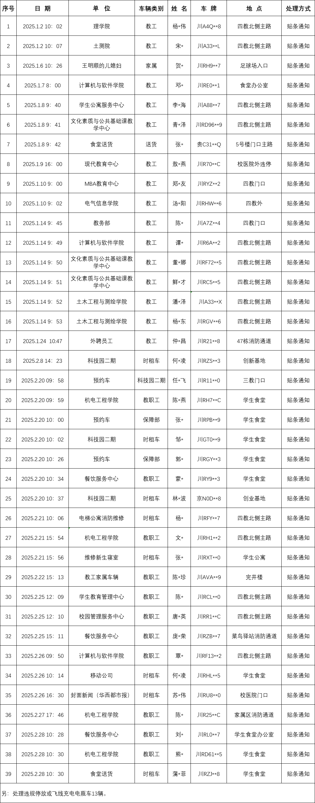 2025年1、2月校園內(nèi)機(jī)動(dòng)車違規(guī)停放名單