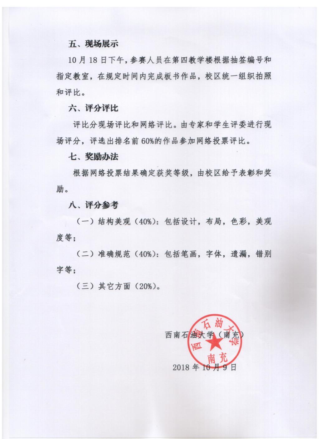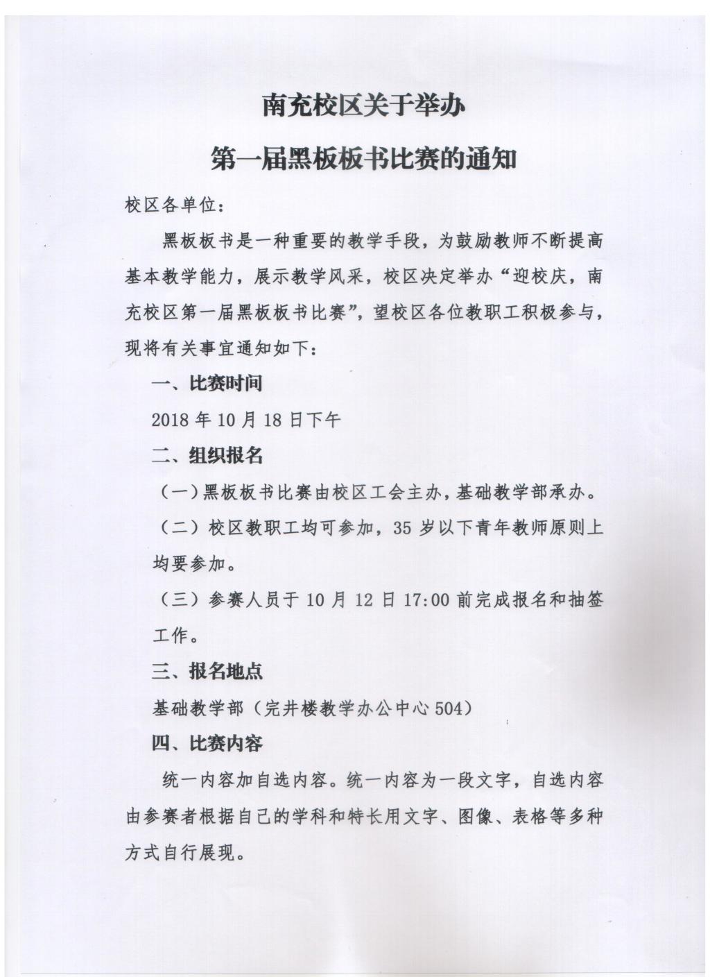 南充校區關于舉辦第一屆黑板板書比賽的通知
