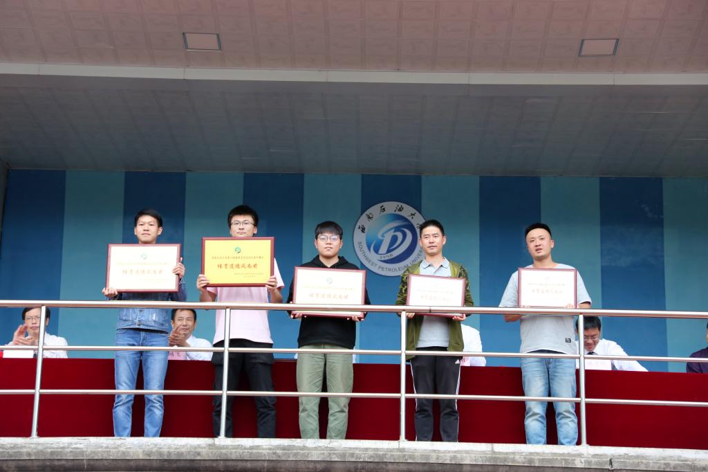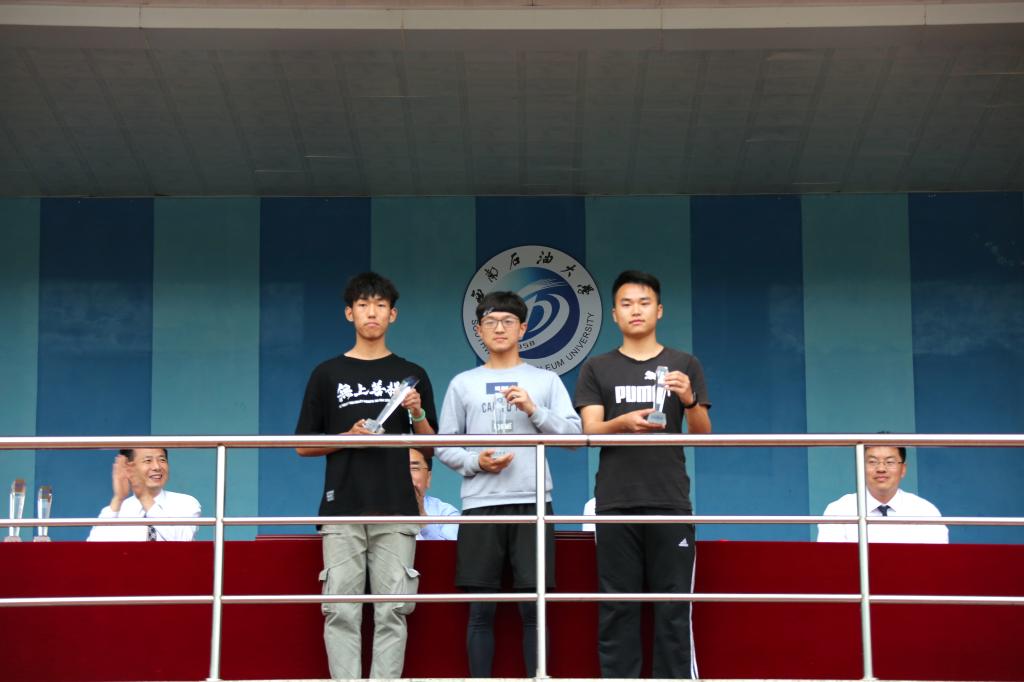 本屆運動會總裁判長牛美惠宣讀了獲獎名單。能源與環境系統工程、光電信息科學技術與工程和工程造價代表隊獲得入場式方隊優勝獎。機械電子工程、電氣工程與智能控制和數字媒體技術代表隊獲得學生體育道德風尚獎。城鄉規劃2016級同學杜雨隆榮獲“最佳男運動員”稱號,財務管理2017級同學羅建莉榮獲“最佳女運動員”稱號。機械電子工程、電子與計算機工程和城鄉規劃代表隊分別獲得男子團體前三名。工程造價、財務管理和焊接技術與工程代表隊分別獲得女子團體前三名。基礎教學部、工程學院教工和信息學院教工代表隊分別獲得教職工男女混合50米迎面接力前三名。財經學院和后勤服務公司獲得教工體育道德風尚獎。