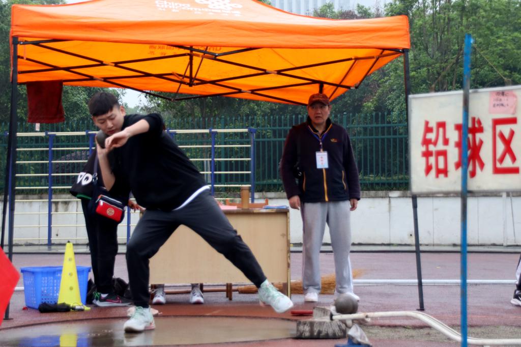 建筑環(huán)境與能源應(yīng)用工程專業(yè)2020級龔圣博參加男子鉛球比賽場景