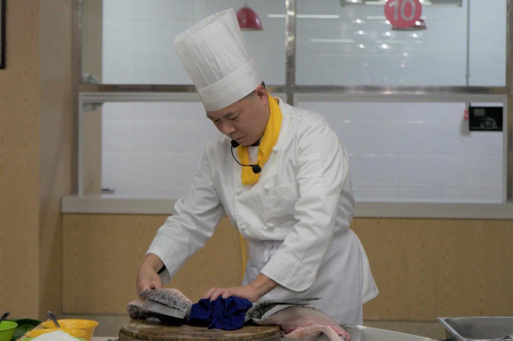 近日,中國文化飲食研究會餐飲傳承委副秘書長、國家高級技師謝君憲應邀到校區為100余名學生講授了《中國飲食文化》實踐教學課。