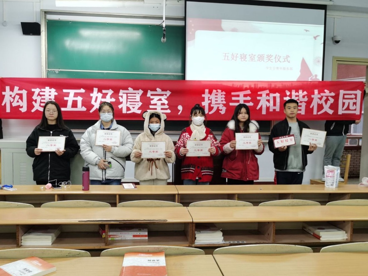 本次活動包括前期宣傳、評選、頒獎三個階段。在前期宣傳過程中,學生會成員積極向全體同學宣傳了“五好寢室”的標準:學習風尚好、內務衛(wèi)生好、團結友善好、文化氛圍好、精神面貌好,鼓勵動員大家積極按照標準,建設自己的寢室。在評選過程中,工作人員分別從“五好寢室”的五個方面對每一個參評寢室進行了評分,在工作人員來到各個寢室評分時,參評寢室不僅做到寢室衛(wèi)生干凈整潔,書桌物品擺放整齊,寢室同學還向工作人員積極講解自己寢室的成員學習情況、寢室裝飾風格和寢室文化氛圍建設等情況,參與度極高。經(jīng)過系統(tǒng)考核,最終評選出了3個一等獎,8個二等獎和6個三等獎,共計17個寢室獲得“五好寢室”榮譽稱號。(圖/文楊智光 洪健偉 盧妍雅)