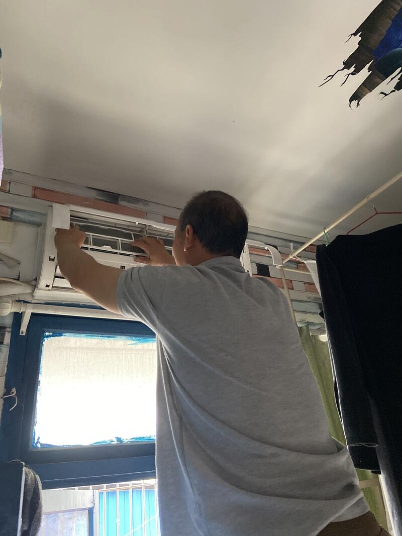 學管中心員工清洗空調場景