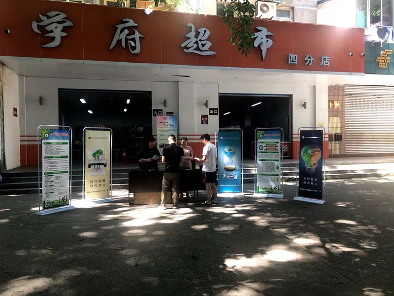 6月29日至7月5日是全國第30個節能宣傳周。在7月2日全國低碳日當天,后勤服務公司圍繞“綠水青山,節能增效”為主題,深入開展全民節能宣傳教育,倡導節能減耗與綠色環保的生活風尚。本次活動場地設置在教工區學府超市四分店門口。