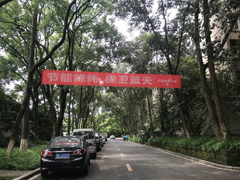 后勤服務公司懸掛的節能減排宣傳橫幅