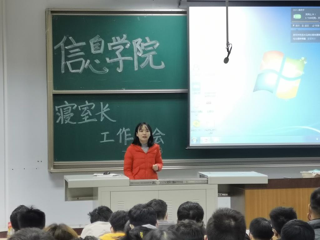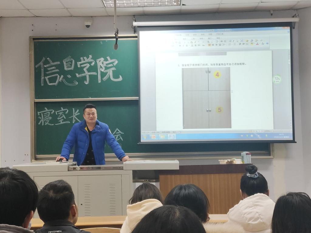 為營造良好的寢室生活環境,構建整潔、和諧、安全的寢室氛圍,12月3日下午4:30,信息學院在第四教學樓4416召開了寢室長工作會。參與本次活動的有信息學院輔導員崔勇、薛靜,以及各專業年級的寢室長。會議由信息學院學生會青年服務部部長徐寧主持。