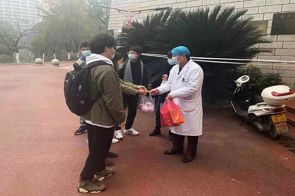 工程學(xué)院學(xué)生向校區(qū)防疫工作者送水果