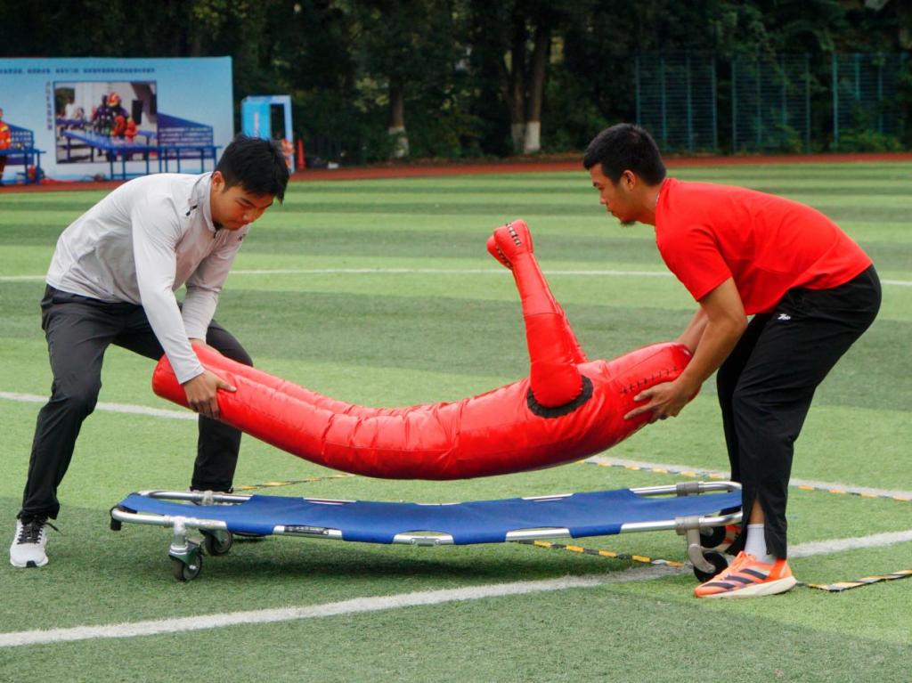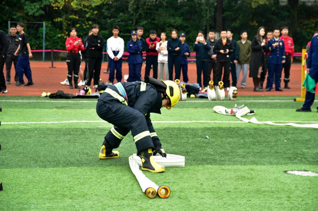 本屆消防運動會設絕地求生、遠程供水、防護服接力操、鋪設水帶操、搬運假人5個比賽項目。來自西華師范大學、川北醫學院、南充職業技術學院、南充科技職業學院和南充校區的5支代表隊參加比賽。