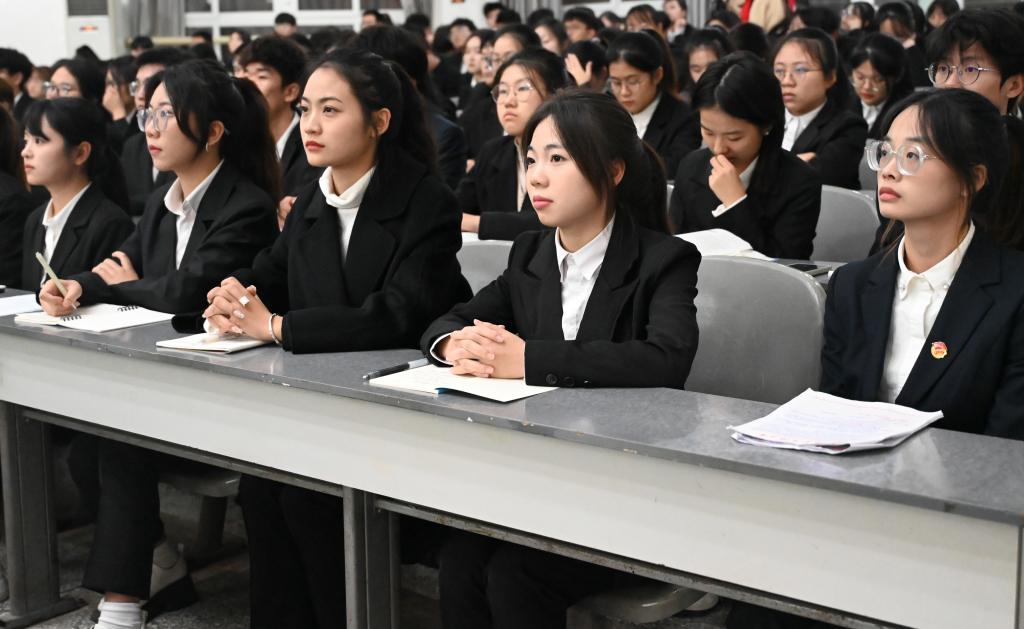 校區第七期“青馬工程”培訓班實踐導師及全體學員聆聽了報告。(青年傳媒中心 文/柳昊 圖/向萌 陳思婕 葉雨溪 羅雅 李玉玲)