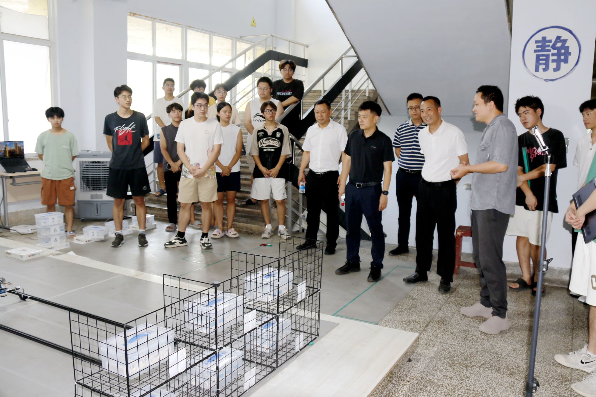 這些優異成績的取得,離不開學校的頂層設計與領導的深切關懷。7月30日上午,校黨委常委、副校長周瑩在校區領導覃鴻飛、李平的陪同下,深入競賽訓練場地,代表學校看望慰問暑期留校備賽的師生。校領導一行仔細察看了訓練設施配置、備賽資料整理及學生階段性成果展示,詳細了解了不同競賽項目的場地保障與環境優化情況,并認真聽取了指導教師關于備賽方案、訓練進度、賽事難點的匯報,與參賽學生面對面交流,詳細詢問備賽過程中遇到的技術瓶頸與生活需求,肯定了師生們“不畏酷暑、攻堅克難”的奮斗精神。