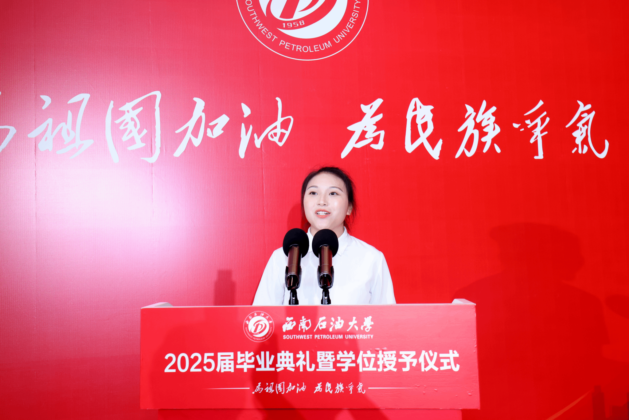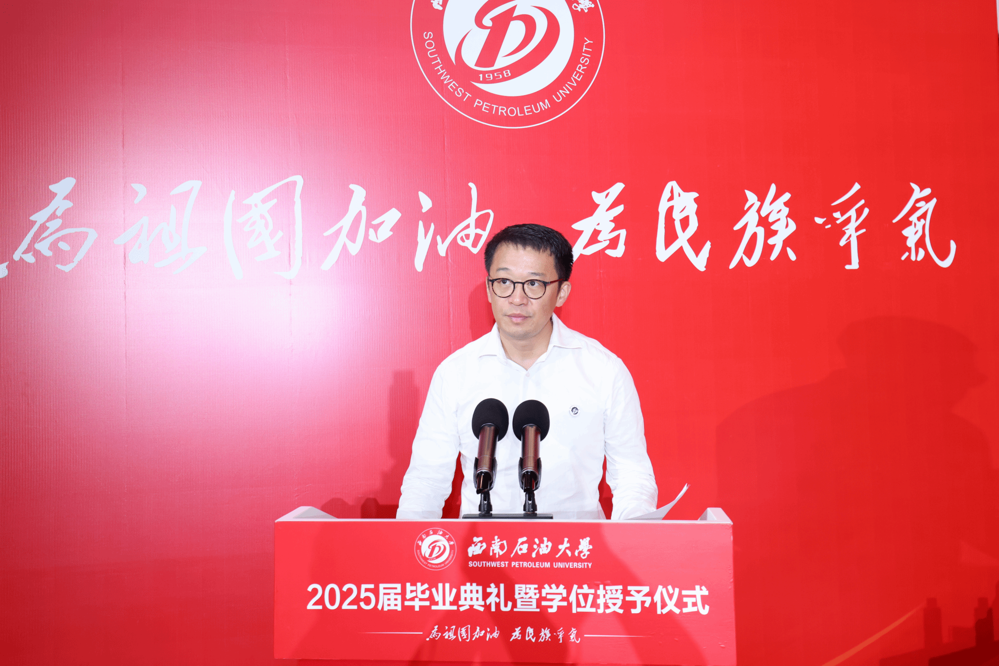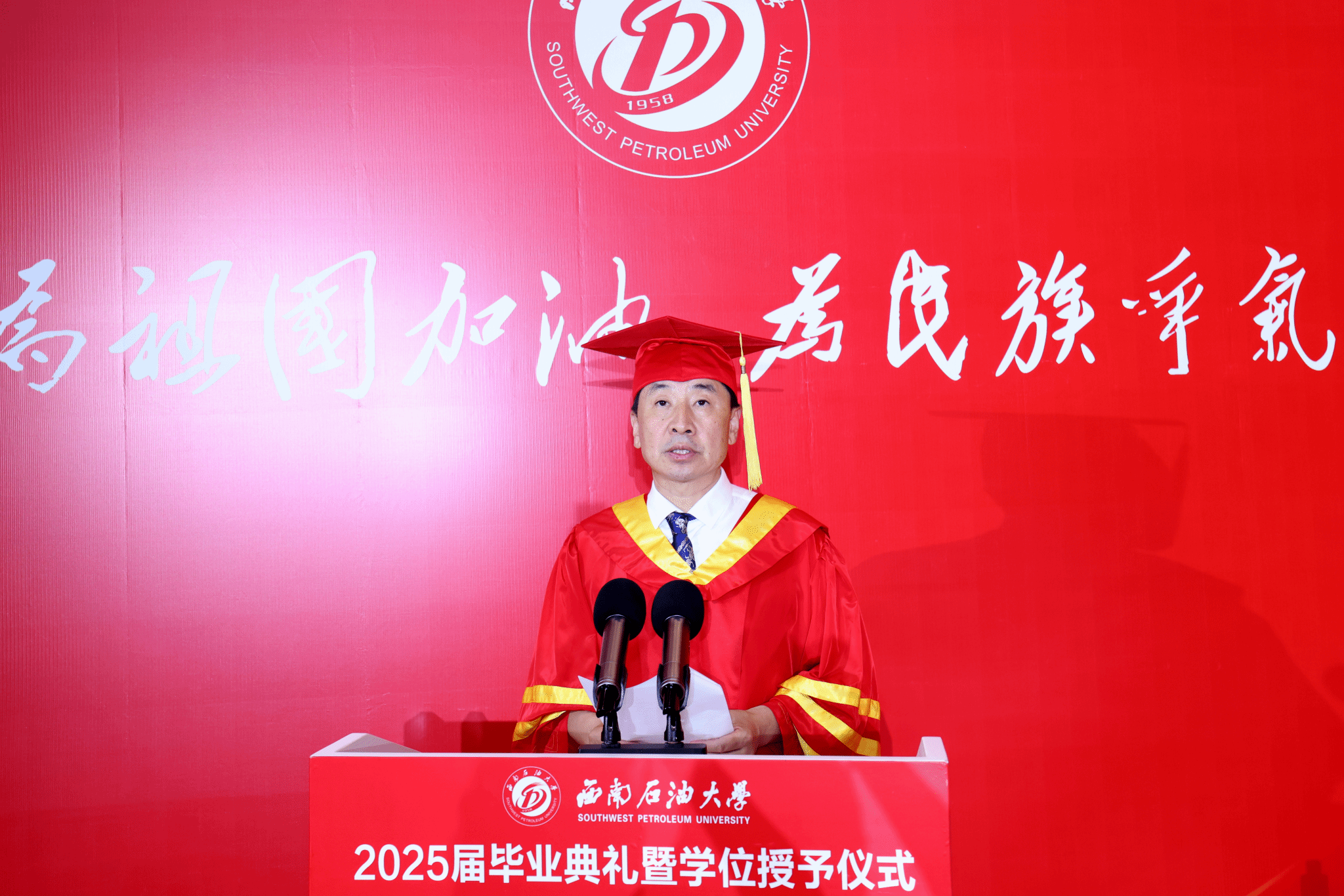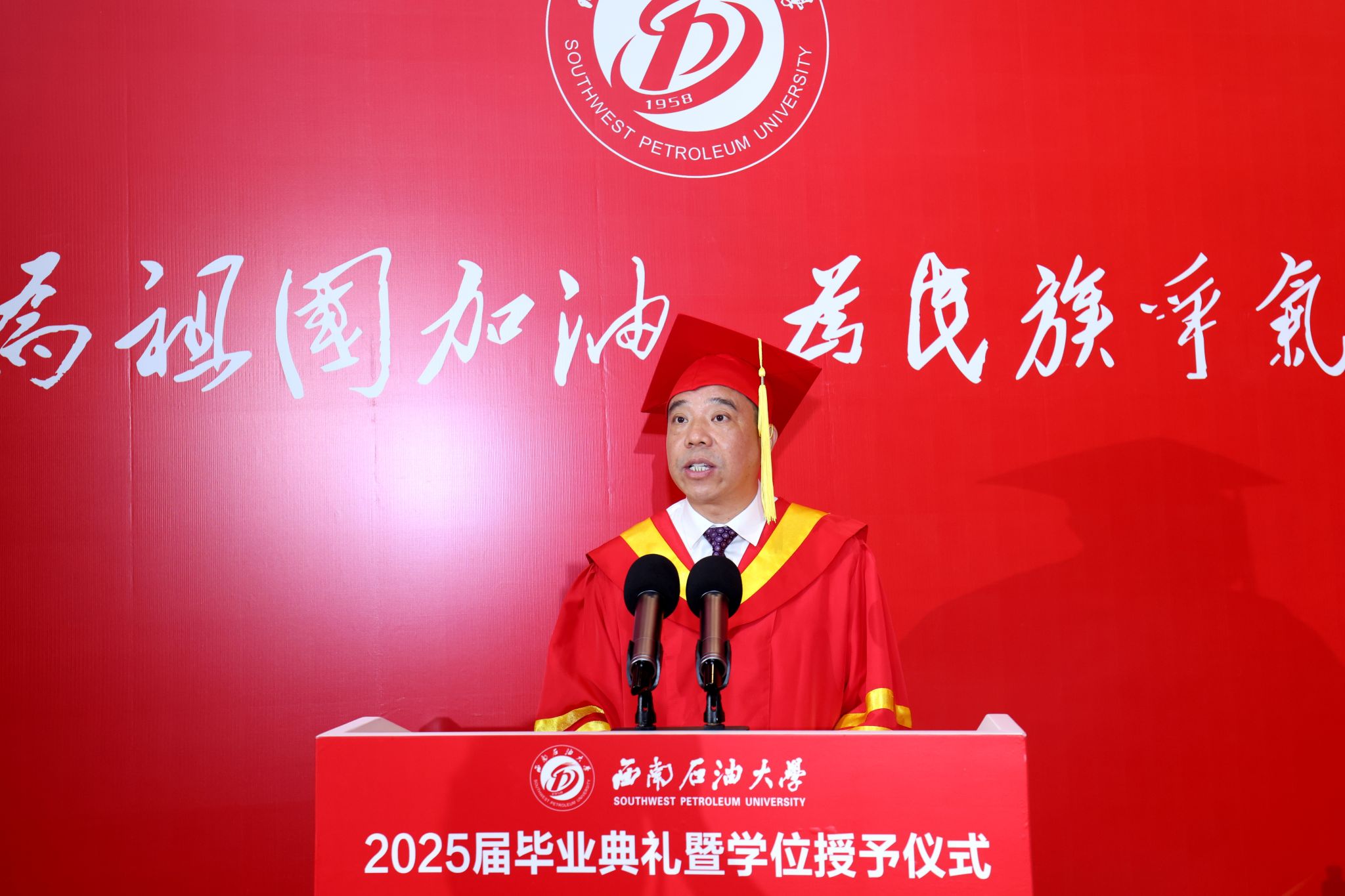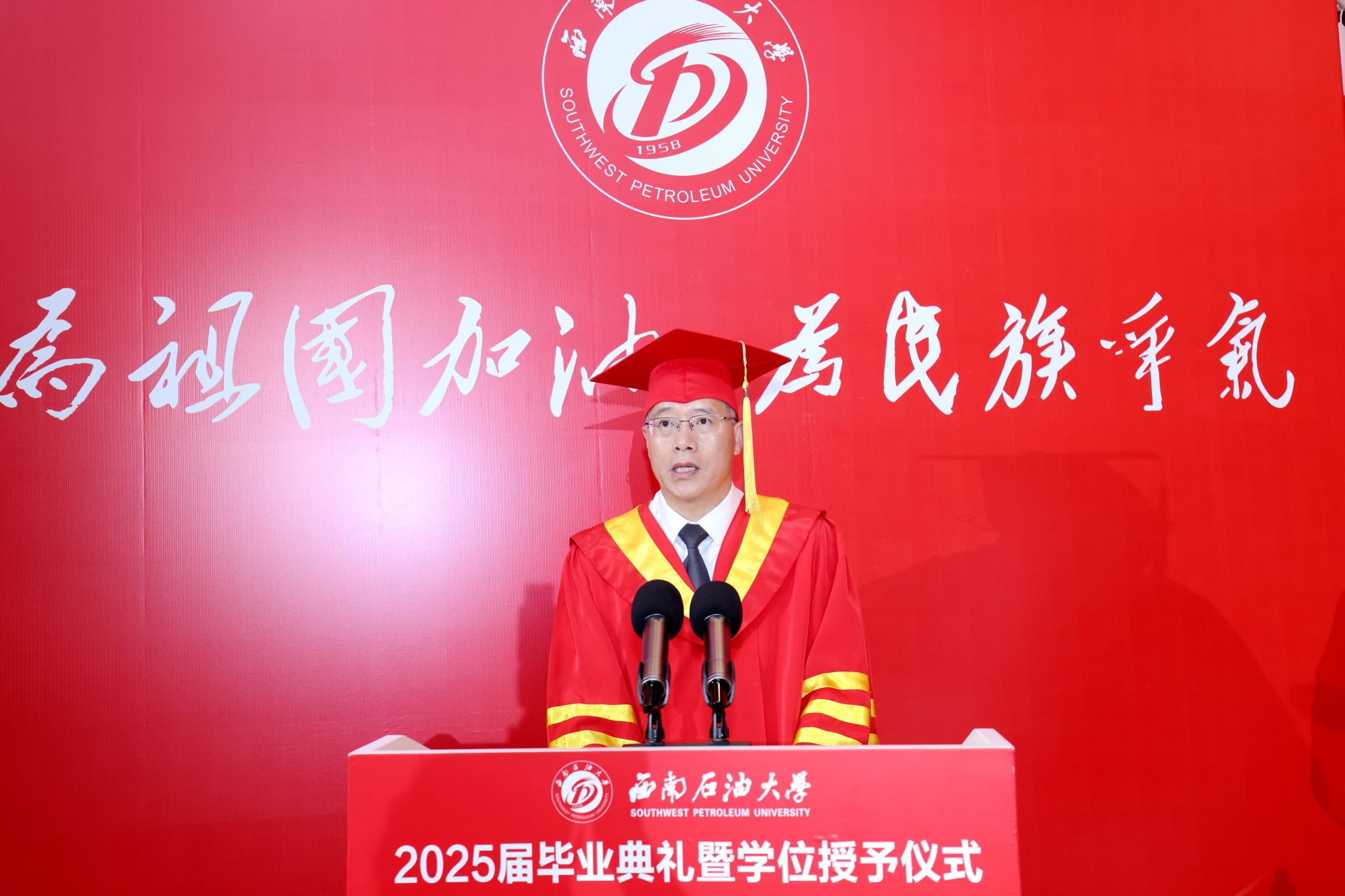 校黨委副書記、校長郭建春向圓滿完成學業、即將奔赴新征程的全體畢業生致以祝賀。他寄語同學們,立青云之志,以家國情懷錨定人生坐標,心懷高遠立潮頭,以“強國有我”的使命和“舍我其誰”的勇氣,定位人生坐標,在服務國家戰略需求的攀登中,鑄就無愧時代的輝煌篇章。要礪篤行之功,以實干精神筑牢事業根基,苦干實干扎深根,用腳踏實地的持續奮斗詮釋青春價值,在深耕細作中厚植人生根基,彰顯奮進的力量。要鑄堅韌之魂,以百折不撓直面時代挑戰,希望你們百煉成鋼志愈堅,受挫時不失其志,低谷時不改其向,在千錘百煉的磨礪中綻放耀眼光芒。要懷濟世之情,以大愛擔當成就生命高度,執愛為炬赴前程,在成就“小我”與奉獻“大我”的融合中,抵達人生價值的最高處,成就大我之境。