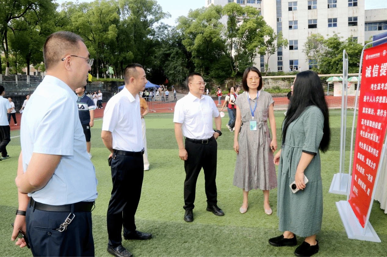 校園里,彩旗隨風飄揚,志愿者在十字路口熱情為參會考生及家長指引路線。會場入口,設置了自動安檢機,全力保障參會人員的安全。