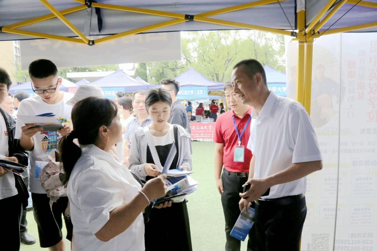 咨詢會現場,南充校區領導、四川省招生考試指導中心、南充市教育考試院有關同志,南充校區相關職能部門和各延伸管理學院負責人到會指導,與參會高校招生老師、考生及家長、學生志愿者進行了交流。
