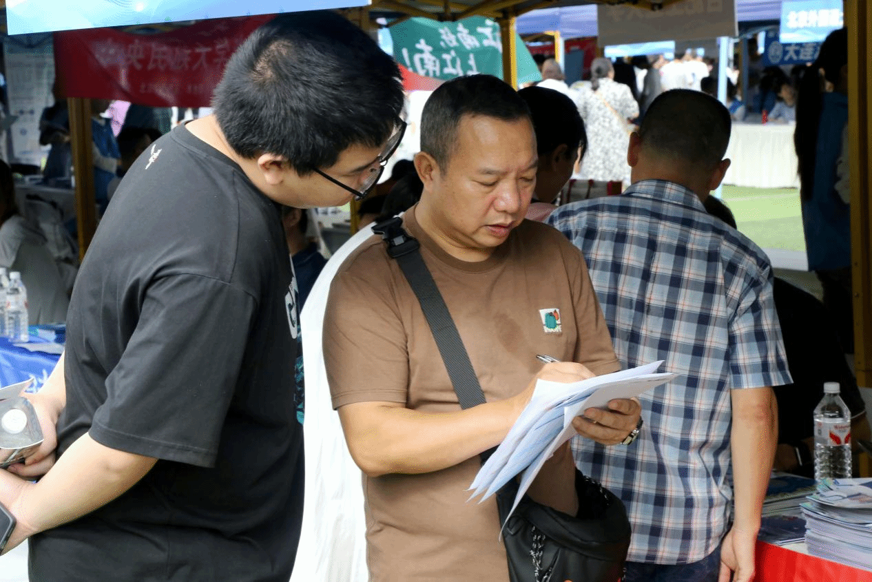 咨詢會現場,考生和家長們穿梭于各個展位之間,認真聆聽各高校招生老師的詳細介紹。