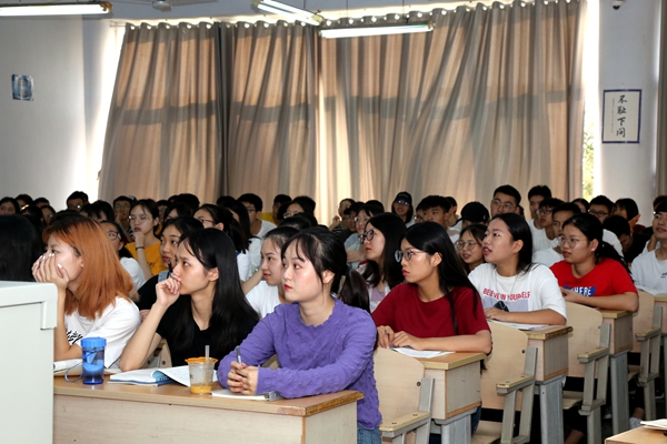 校長助理、南充校區常務副校長趙剛與學生同聽開學第一課