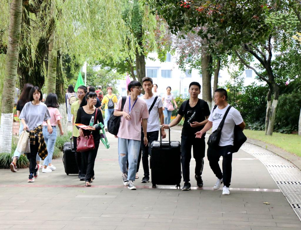 迎新期間,南充校區學生干部、大學生全媒體中心學生記者、學生社團組織等學生志愿者儼然成了新生接待站的一道不可忽視的風景線,他們熱情周到的“一對一”服務總是能得到新生和家長的頻頻稱贊。