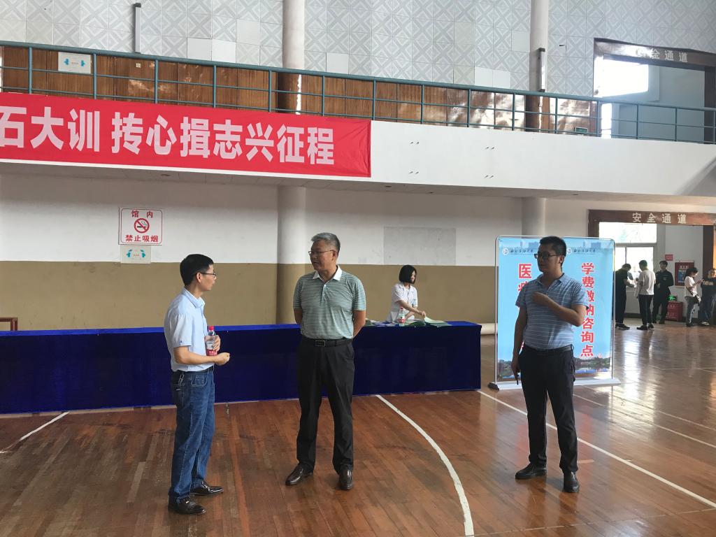 校區領導張光君陪同學校領導趙正文檢查指導迎新工作場景