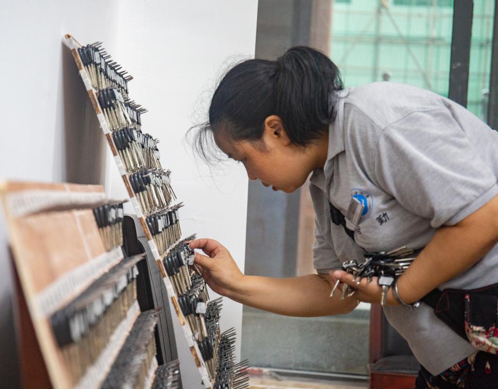 學生公寓管理員認真工作場景