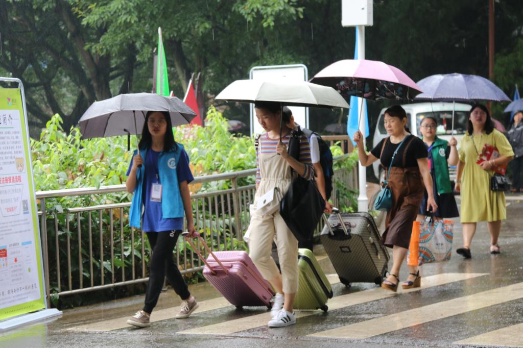 迎新期間,南充校區各工作小組各司其職,校區迎新工作秩序井然。記者看到保衛部老師指揮車輛到規定停車地方有序停放,保安正在校園里巡邏,“能讓新生放心報到,守護他們的安全,這是我們的責任和擔當”。為讓新生有一個舒適的居住環境,新生入學前校區對學生公寓的配套服務設施進行了嚴格仔細的檢查。后勤環衛工人認真打掃校園里的每一處街道,致力于為同學們打造一個美麗、舒適的校園環境。學生食堂的工人也在精心準備可口的飯菜,力爭讓新生感受到“家”的味道。校醫院還貼心地準備了清涼油、藿香正氣液等免費的防暑、解暑藥品,并在迎新地點值班,做好應對突發情況的準備。