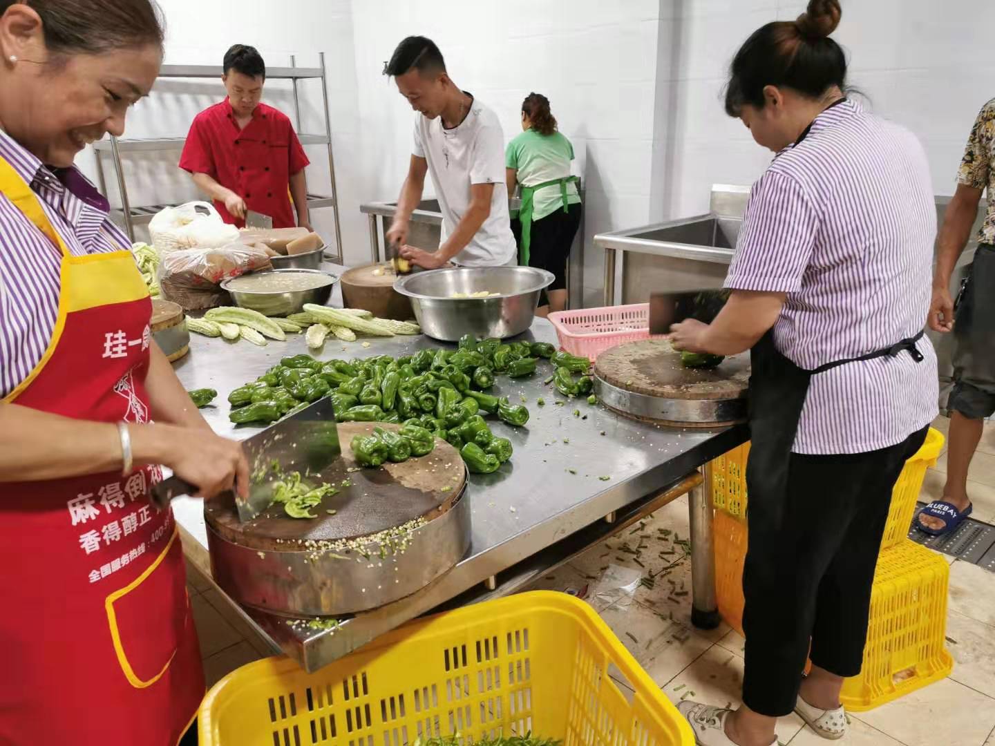 學生食堂準備飯菜場景