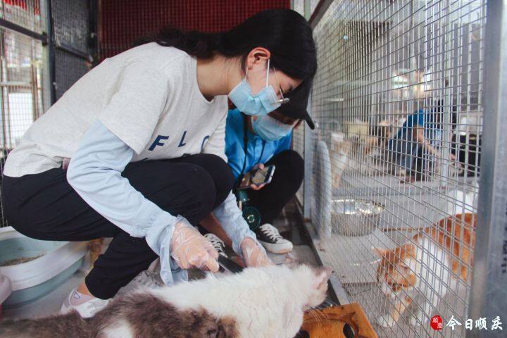 進入基地,便看到同學們正跟隨基地工作人員打掃貓舍,為貓狗換水添糧。由于基地條件惡劣,部分同學對環境并不適應,但仍堅持幫助基地工作人員救治受傷的小動物。