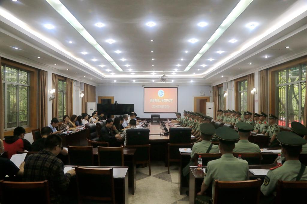 王勝軍對承擔本次軍訓(xùn)任務(wù)的全體官兵表示歡迎和感謝。他組織大家學習了《西南石油大學南充校區(qū)2021年軍訓(xùn)疫情防控工作方案》,介紹了2020級軍訓(xùn)工作時間、內(nèi)容、注意事項及軍訓(xùn)建制安排。