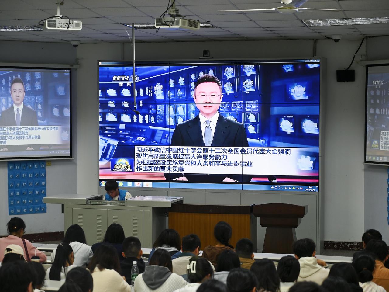 圖為同學(xué)們觀看視頻