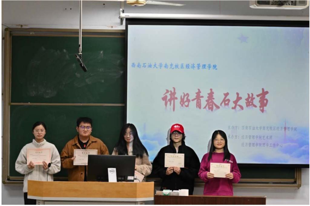 為筑牢石大精神的根基,將石大精神融入學(xué)生的日常生活,助力石大精神在新時代的創(chuàng)新發(fā)展,11月14日,經(jīng)濟(jì)管理學(xué)院藝術(shù)團(tuán)和團(tuán)學(xué)工作中心在第四教學(xué)樓517教室舉辦“講好青春石大故事”主題演講比賽。