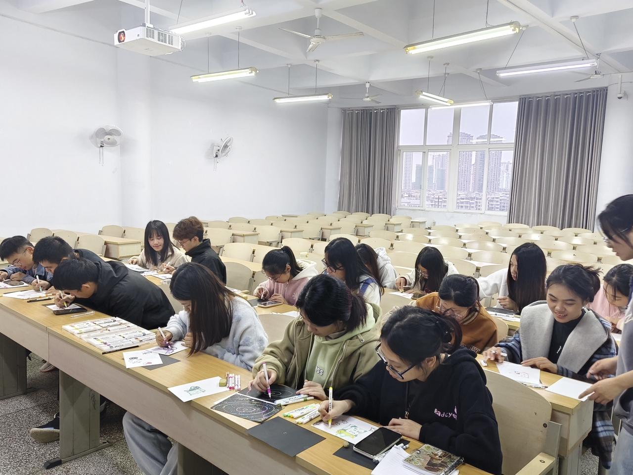 活動中,主講人鄧麗娟以手賬設計思路、色彩搭配、繪畫技巧為切入點,對手賬插圖繪畫進行了詳細的講解。同學們在理解一番講解之后,隨即開始動手繪制手賬插畫。繪制過程中,同學們從日常生活汲取靈感,將“藝術美”融入“生活熱”,通過獨特的創意和豐富的色彩搭配創作出各式精美的手帳作品。同學們在制作手賬的過程中,不僅展現出對生活的熱愛與對美的追求,同時也提升了自己的實踐能力。