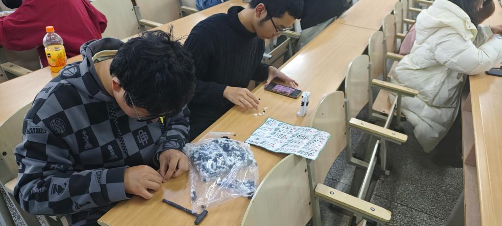 活動伊始,主講人為大家講述了積木的來源及樂高積木的發展史,并為同學們講解了積木的高級玩法與各種技巧。講解結束后,同學們立刻投入到創作之中,積極地將理論融入實踐,在說明書的幫助下,利用主講人講授的技巧,充分發揮想象力,成功地將散亂的積木拼搭成塔、橋、房屋等各具特色且十分精美的手工作品,這些作品充分展現了校區學子優秀的動手能力。