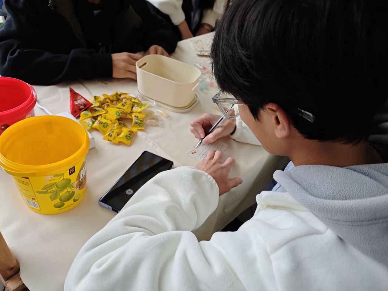 活動現場,“憂者”們首先從工作人員處領取卡片。隨后,他們將自己的煩惱、困惑和心事以匿名形式寫下,并投放到指定的收納盒中。而“解者”們則領取另一份卡片,寫下勵志積極的話語,并投入另一個收納盒中,以此為“憂者”們送去溫暖與鼓勵。許多“憂者”在收到來自陌生人的關懷與鼓勵后,臉上露出了釋然的笑容?;顒幼詈螅瑓f會為完成“解憂”的同學們分發小禮品,肯定他們在本次活動中所做出的積極貢獻。此外,活動現場氣氛熱烈而溫馨,每位參與者都在活動中收獲了感動與成長。