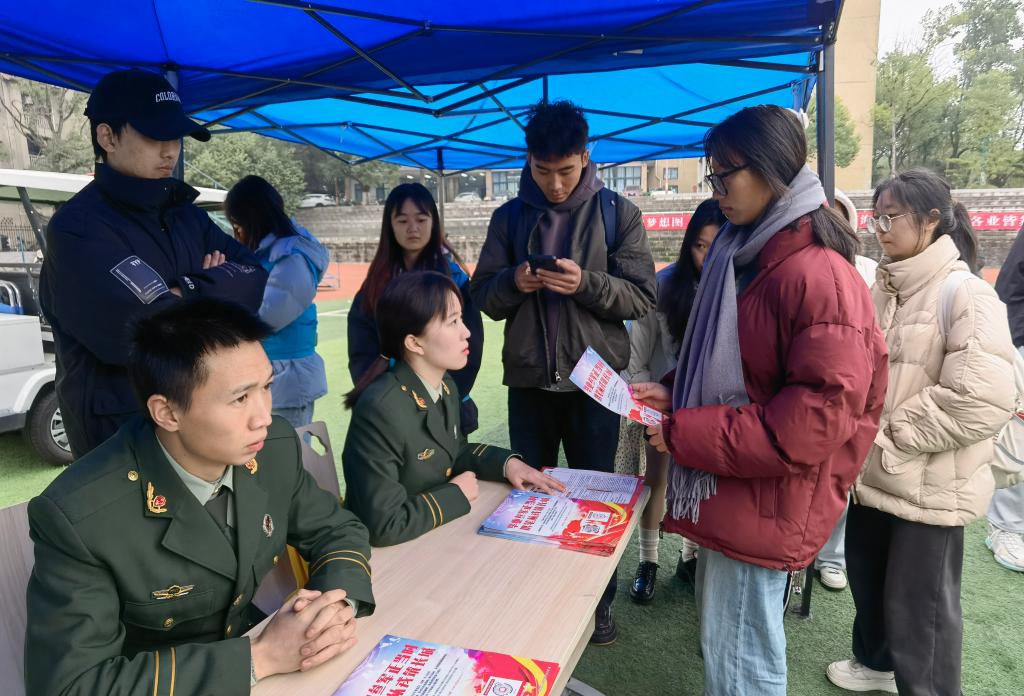 為有效激發大學生的應征入伍熱情,12月2日上午,西柚老兵隊在學校冬季雙選會會場設立了“參軍入伍咨詢處”,并開展了一系列征兵宣傳活動。