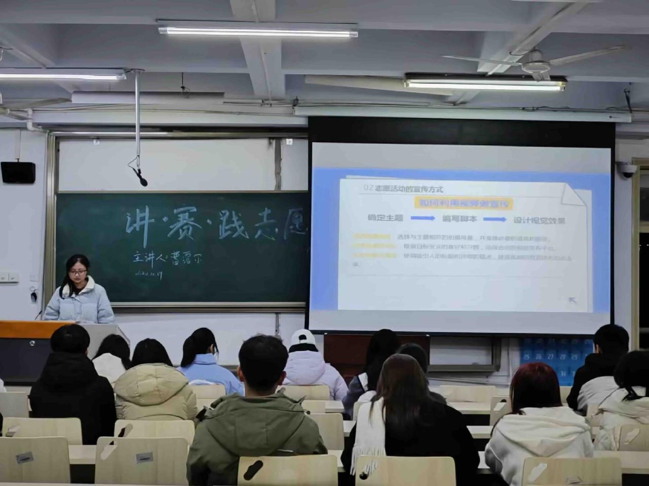 為提升志愿者宣傳能力,推動志愿服務事業的發展,近日,校區社團聯七彩環保協會在第四教學樓413教室成功舉辦“志愿宣傳培訓”活動,本次活動共計31人參與。