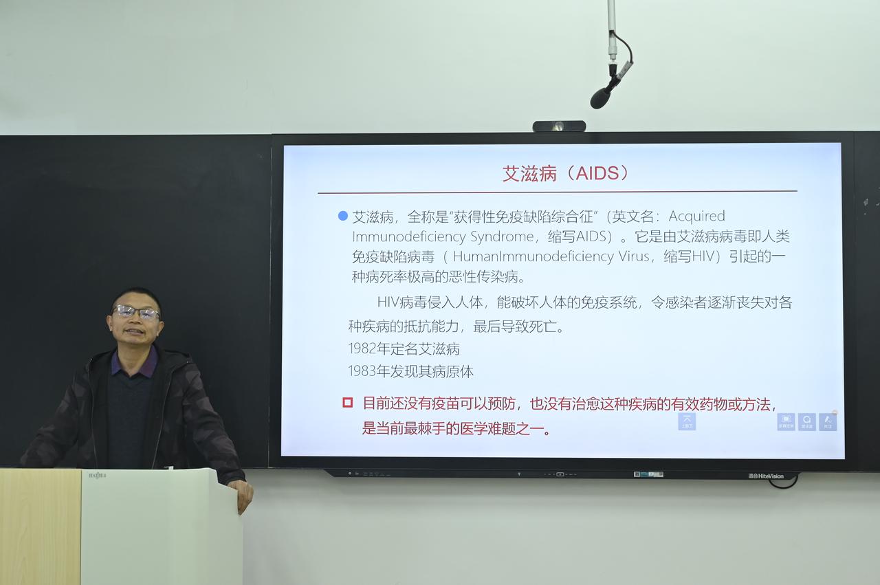 活動特別邀請了南充市防治艾滋病協會講師杜爽擔任主講嘉賓。杜爽老師憑借其豐富的專業知識和多年的實踐經驗,深入淺出地講解了艾滋病的發病機制、傳播途徑、癥狀表現以及預防措施等內容,并結合實際案例分析,讓復雜的醫學知識變得通俗易懂,幫助同學們更直觀地了解艾滋病對個人、家庭和社會的危害。