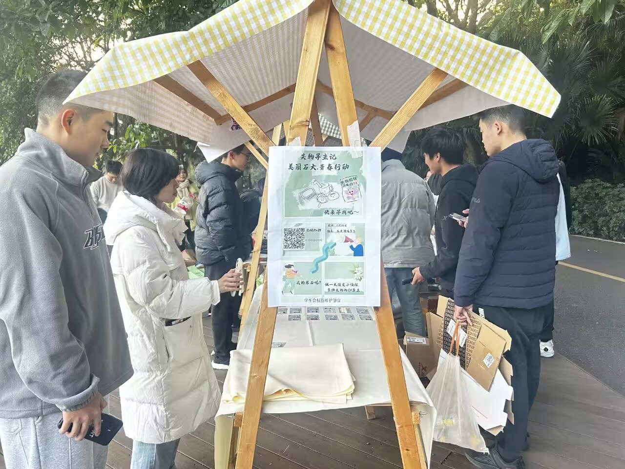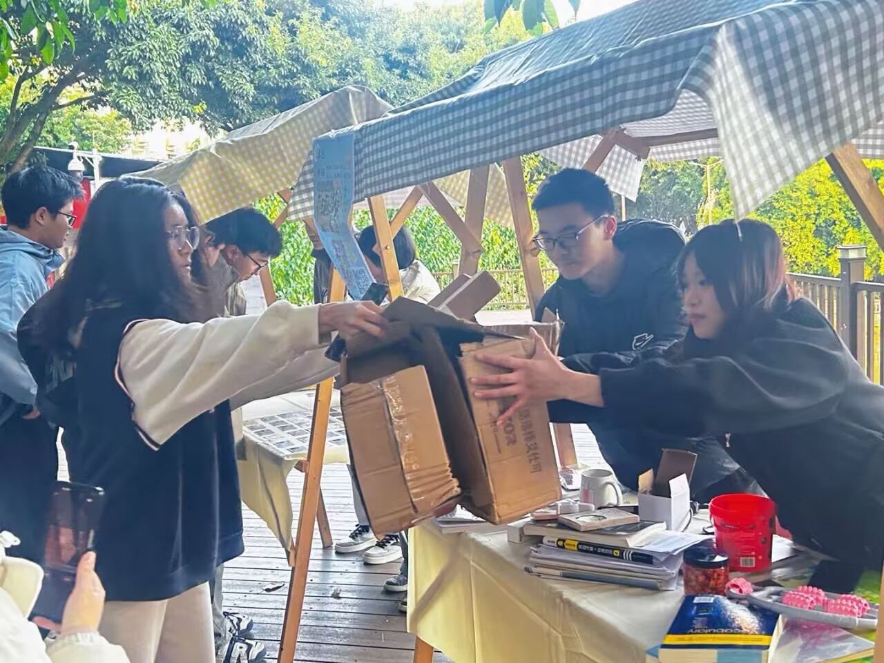 當日下午,活動在龍井湖觀景臺拉開帷幕,吸引了校區內眾多師生的熱情參與。活動分為綠色市場和失物尋主兩大板塊,現場布置井井有條,氛圍十分熱鬧,體現了綠色、環保這一主題。工作人員詳細介紹活動目的、規則及流程,參與者們熱情高漲,紛紛投入到失物認領、綠色交易和失物尋主等活動中,活動熱烈而有序地進行著。 晚上活動圓滿結束,現場工作人員迅速清理場地,保持環境的整潔,對大家的熱情參與和辛勤付出表達了衷心的感謝。