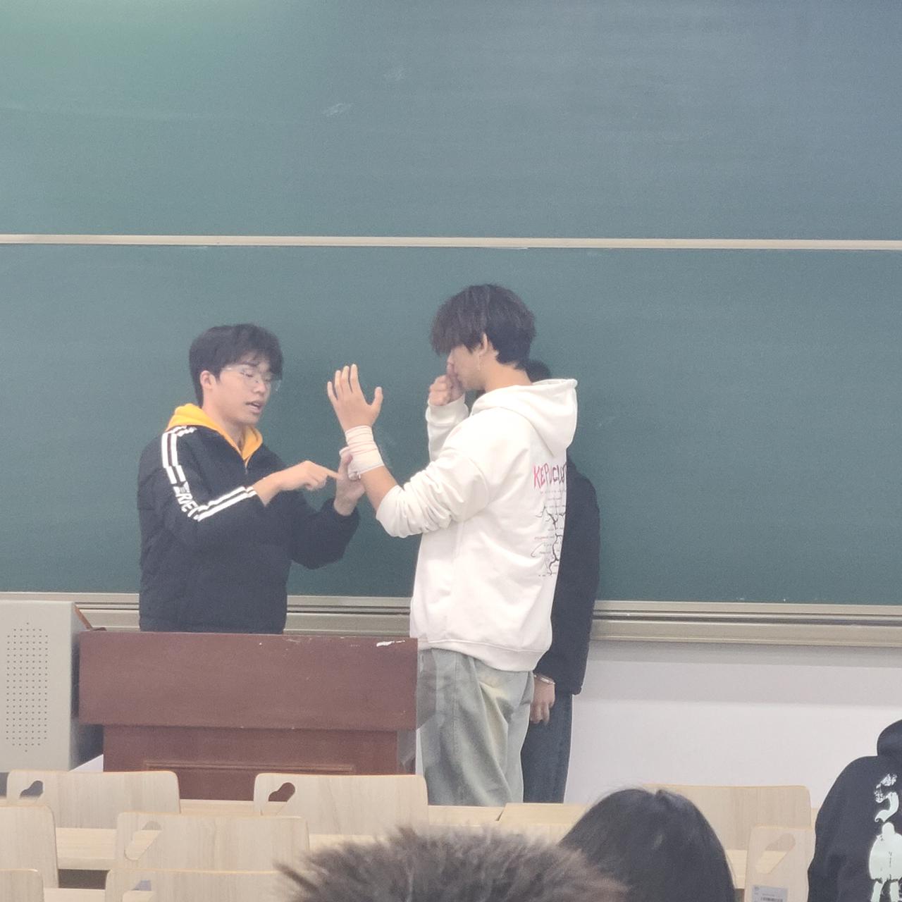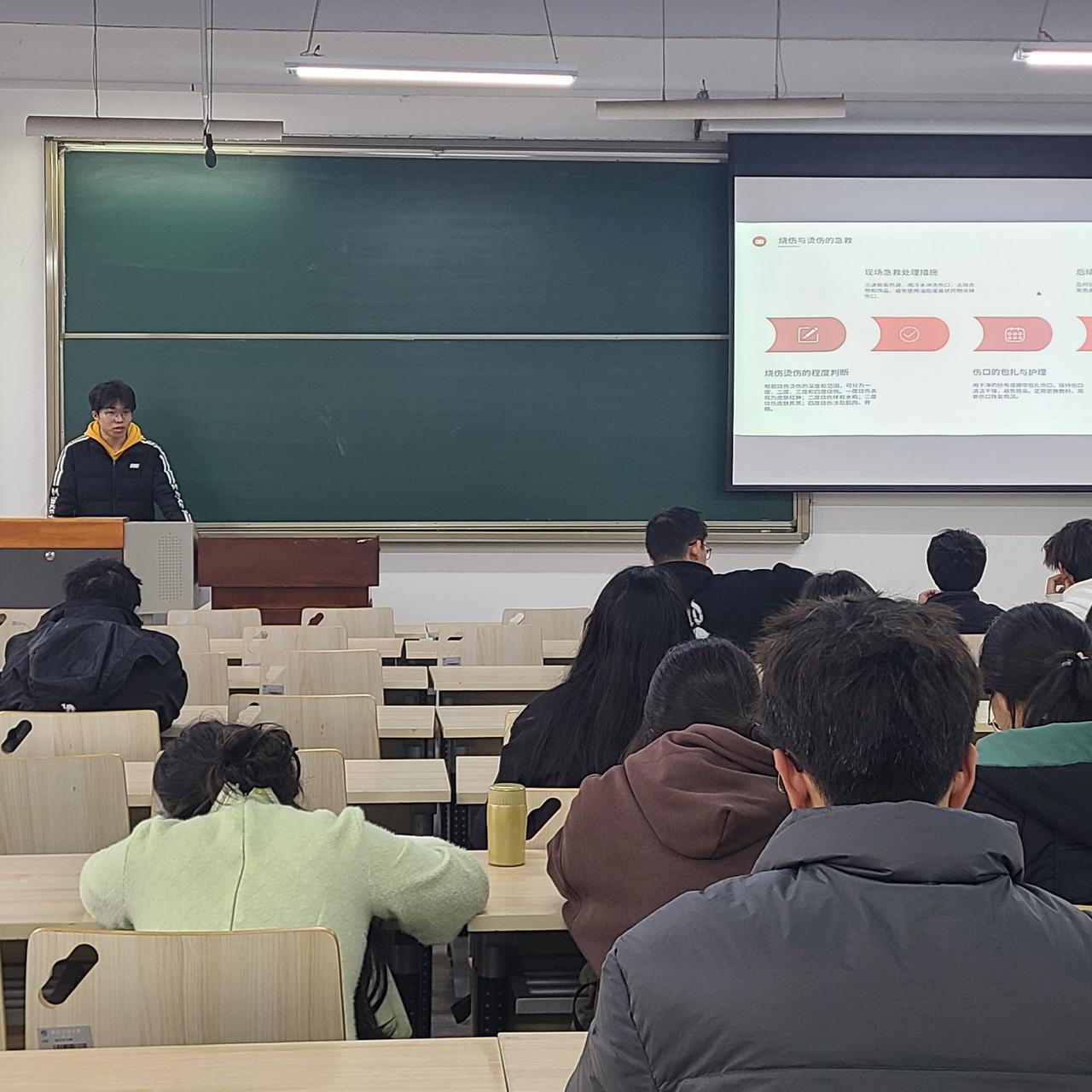 活動伊始,協會會長詳細地為同學們介紹了急救的基礎知識,讓大家對“急救”有了更加系統、全面的認知。緊接著,會長從止血、包扎、骨折固定、傷口處理四個方面,為大家講解了一些基礎的急救處理方法。在講解包扎時,同學們積極參與,上手實操,親身體驗了包扎的過程,學會了八字包扎法的基本動作要領。整個過程中,會長帶領同學們將理論知識與實踐相結合,加深了大家對創傷急救處理方法的印象。