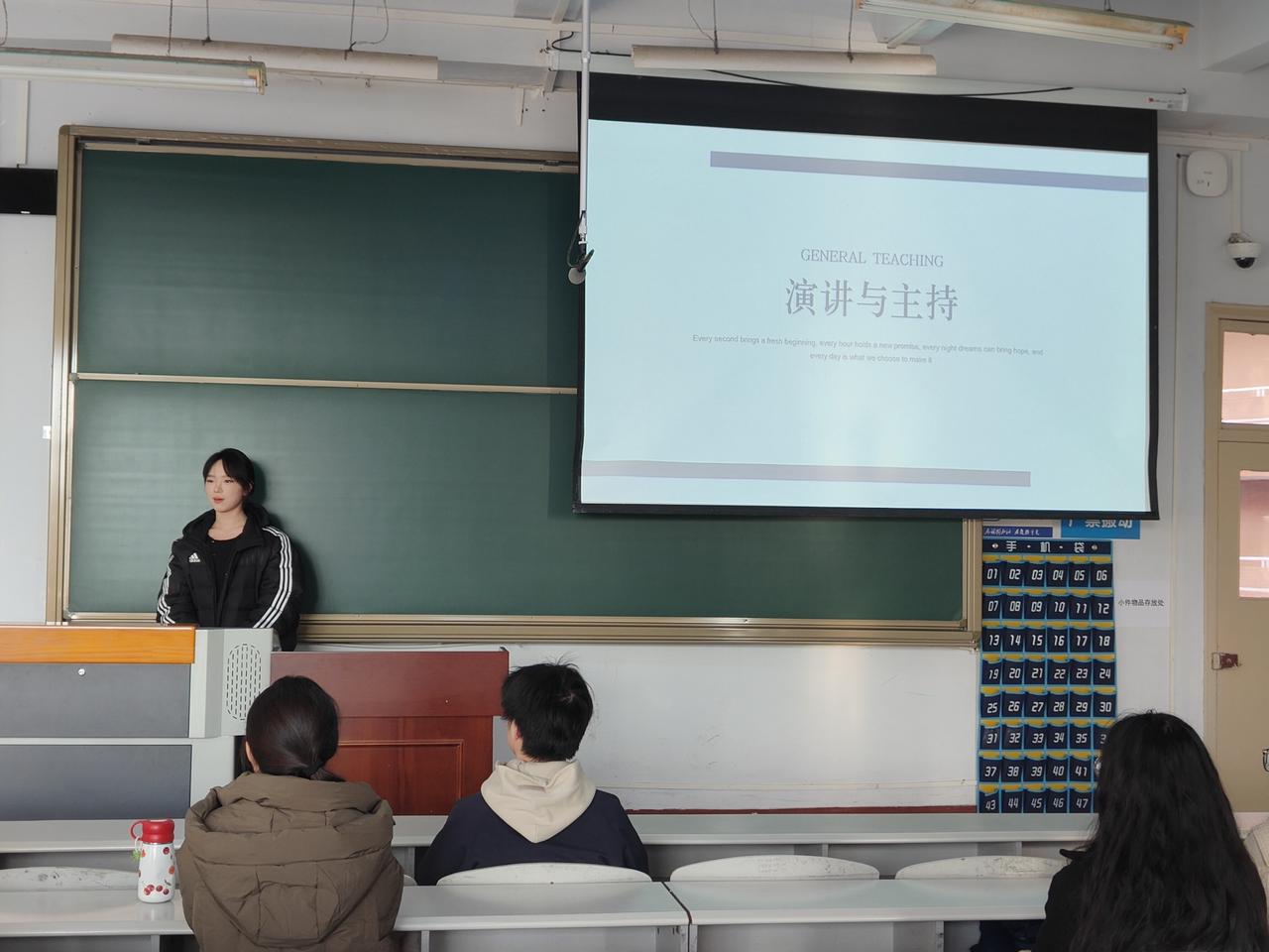 活動伊始,主講人以“威廉王子”為話題,巧妙地激發了同學們的興趣。隨后,主講人從演講的要素、演講稿的撰寫、主持的技巧等方面,就“如何更好地演講”這一問題進行了細致入微的講解,并熱情地分享了自己對各種演講的心得。在活動過程中,同學們表現出極大的熱情,踴躍提問,并積極與主講人交流。同時,主講人也耐心地回答了每位同學的問題,解開了同學們對于演講與主持相關的各種困惑。最后,同學們將課上講授的技巧積極地應用于實踐,有效鞏固了其在本次課程中的學習成果。