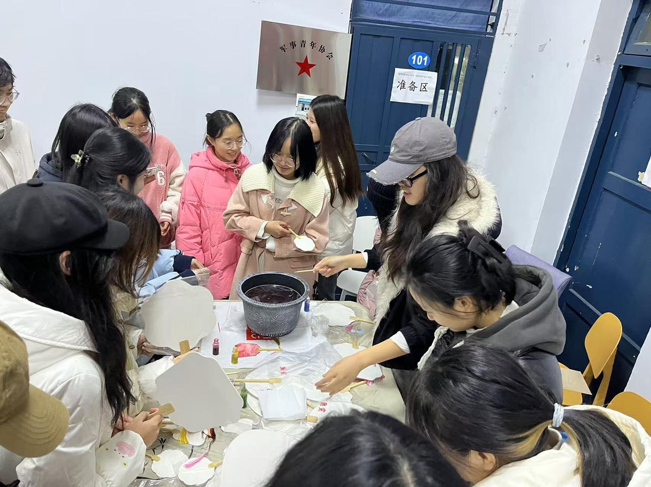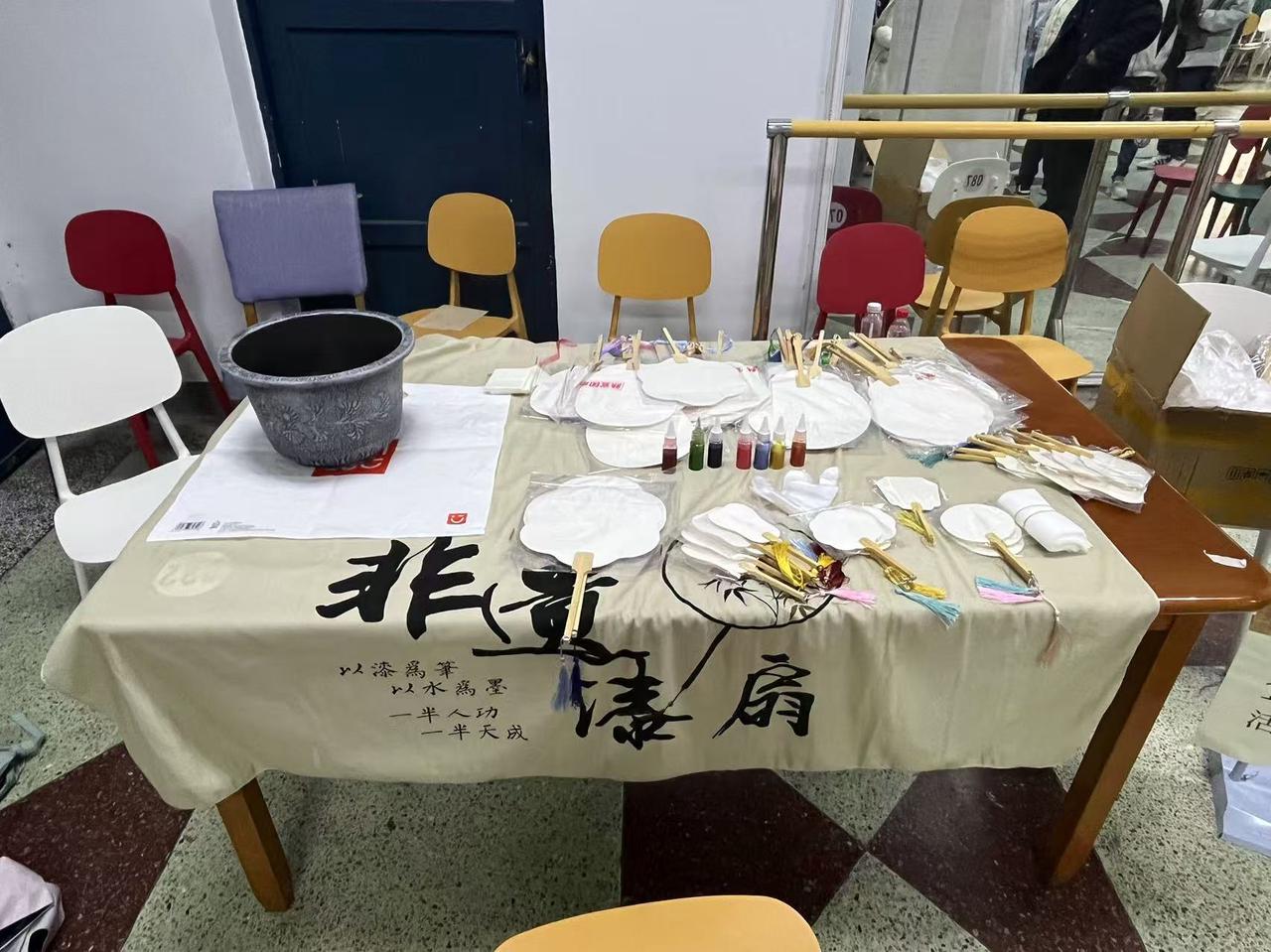 此次活動以漆扇為載體,旨在引導同學們通過親手繪制漆扇,感受傳統文化的魅力,同時緩解初入大學時的迷茫與壓力。活動現場,藝術工作坊的準備工作細致入微,各色染料與多種尺寸的白漆扇整齊排列,為新生們提供了一個展示自我、發揮創意的平臺。除了繪制漆扇外,現場還設置了便利貼寄希望環節,讓同學們在便利貼上寫下對未來的期盼和愿景。一張張便利貼反映著同學們積極向上、勇往直前的精神風貌。