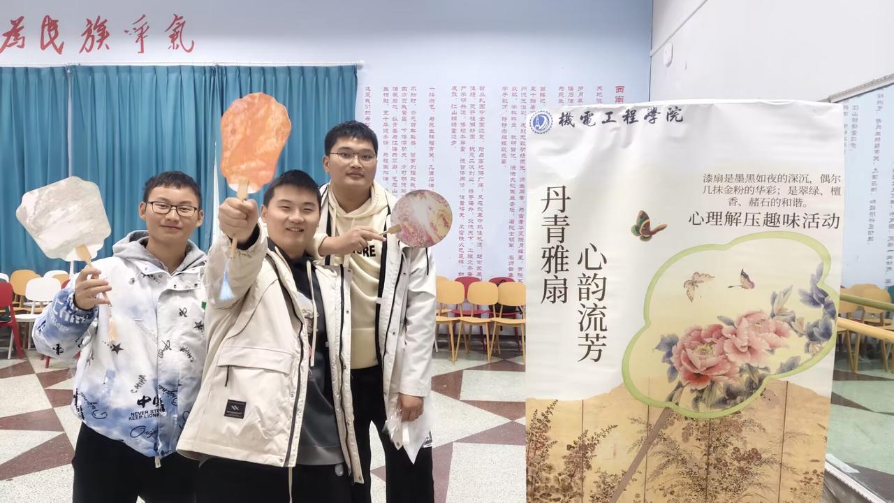 為豐富同學們的校園文化生活,傳承和弘揚中華優秀傳統文化,機電工程學院于12月5日在大學生活動中心開展了“藝美機電”藝術工作坊非遺文化進校園系列的第一期活動——“一扇一心,同繪新章”漆扇傳統文化傳承活動。