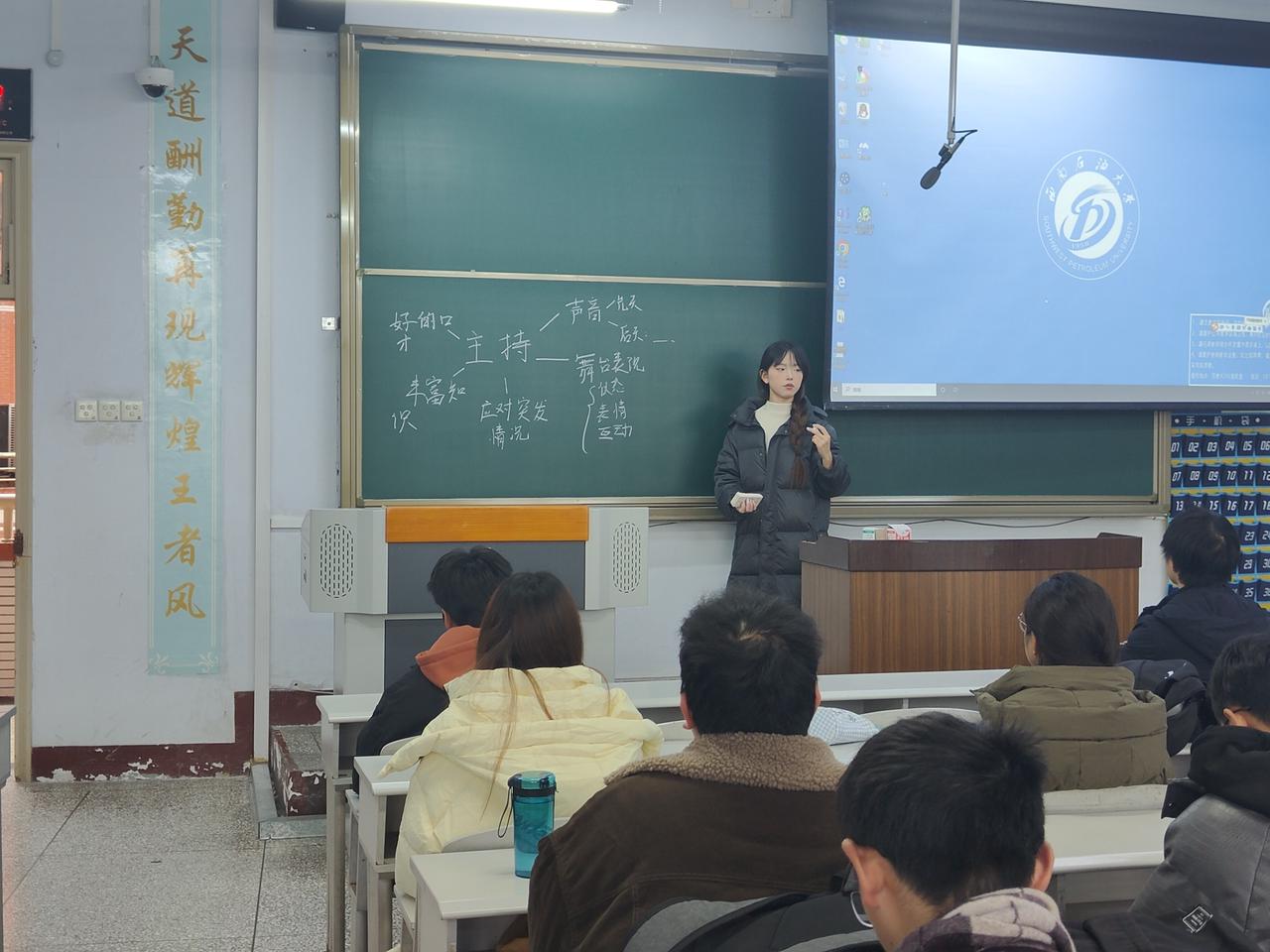 活動(dòng)中,主講人以“優(yōu)秀主持人應(yīng)具備怎樣的素質(zhì)”這一問題開篇,成功引發(fā)同學(xué)們的熱烈討論。主講人表示,一名優(yōu)秀的主持人需要擁有出色的語言表達(dá)能力、敏捷的應(yīng)變能力、深厚的文化底蘊(yùn)、敏銳的洞察力以及別具一格的個(gè)人魅力。隨后,主講人就以上能力要求,為同學(xué)們講述了提升主持能力的鍛煉方法,并進(jìn)行了實(shí)踐。在主講人的鼓勵(lì)下,同學(xué)們踴躍上臺(tái),積極進(jìn)行主持技巧的練習(xí)。這一環(huán)節(jié),不僅鍛煉了同學(xué)們的口才和表達(dá)能力,還培養(yǎng)了他們走向臺(tái)前的勇氣。