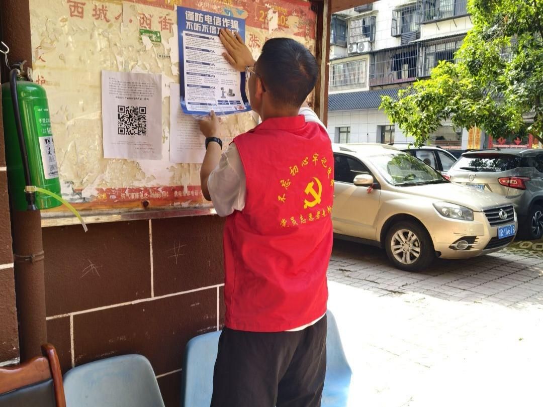 實(shí)踐隊(duì)員張貼電信防詐宣傳單