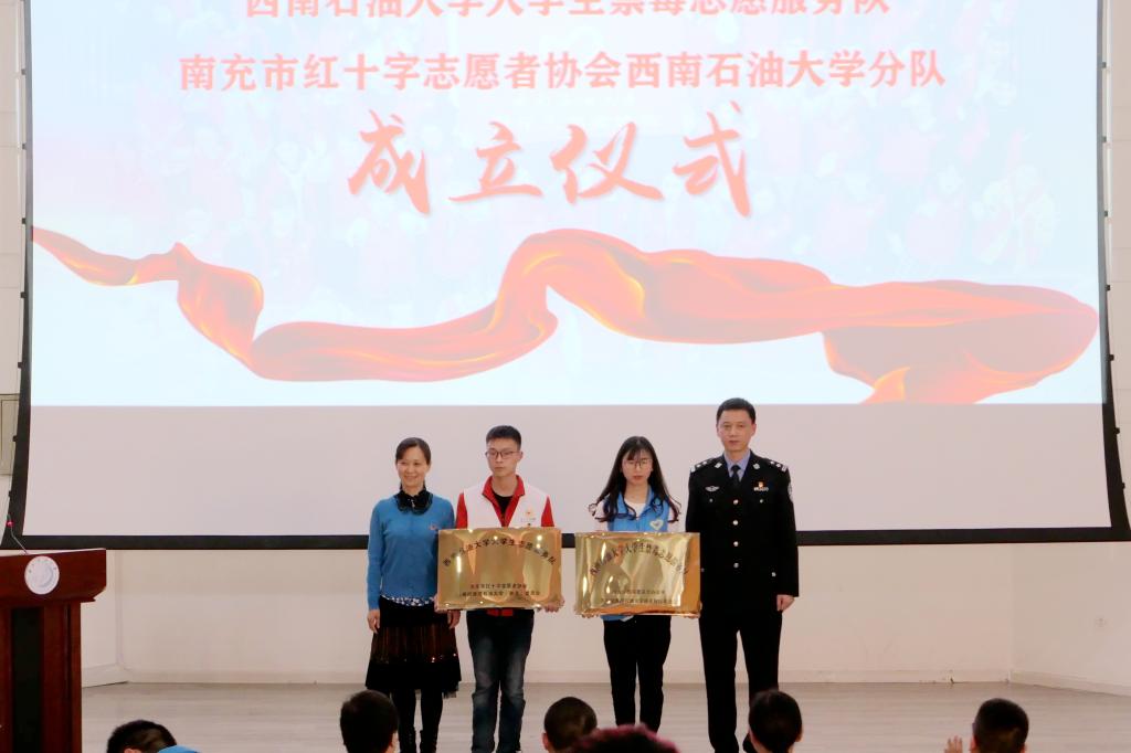 南充市禁毒委、市公安局禁毒支隊為我校大學(xué)生禁毒志愿服務(wù)隊授牌